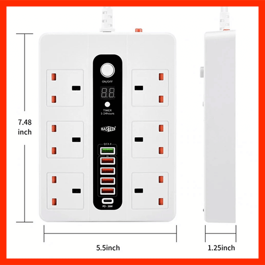 Multi-Socket Power Strip with Timer شريط توزيع كهرباء متعدد المنافذ مع مؤقت